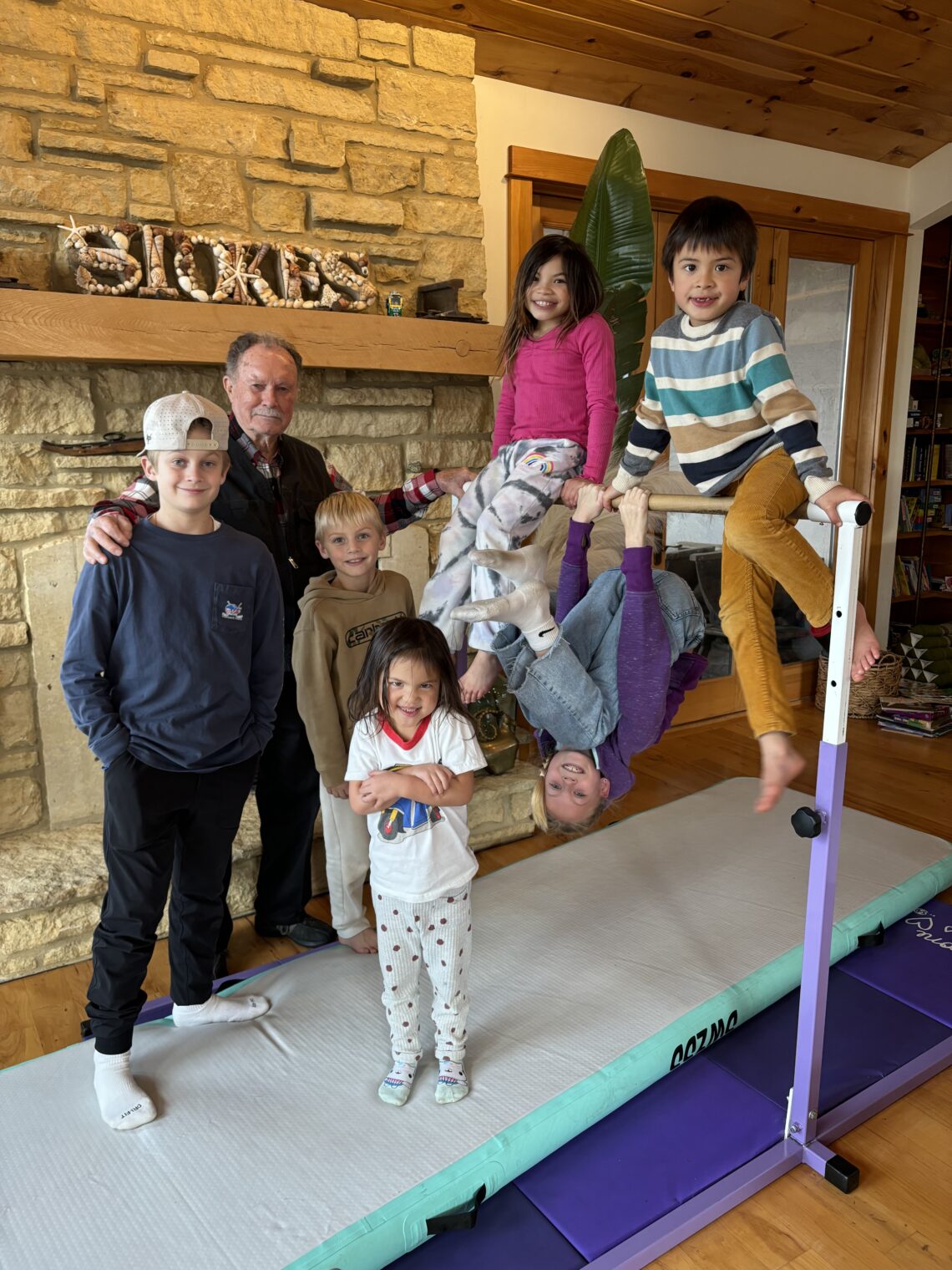 Kickass, the doorstop dog, passes along the keeper’s account of a return visit to the house that he and his family built on the Mazomanie hill, and where grandson Andy and wife Ari and their three kids have now wisely furnished the living room with gymnastic equipment and pads so it is possible to do cartwheels and balance-bar exercises in front of the fireplace.