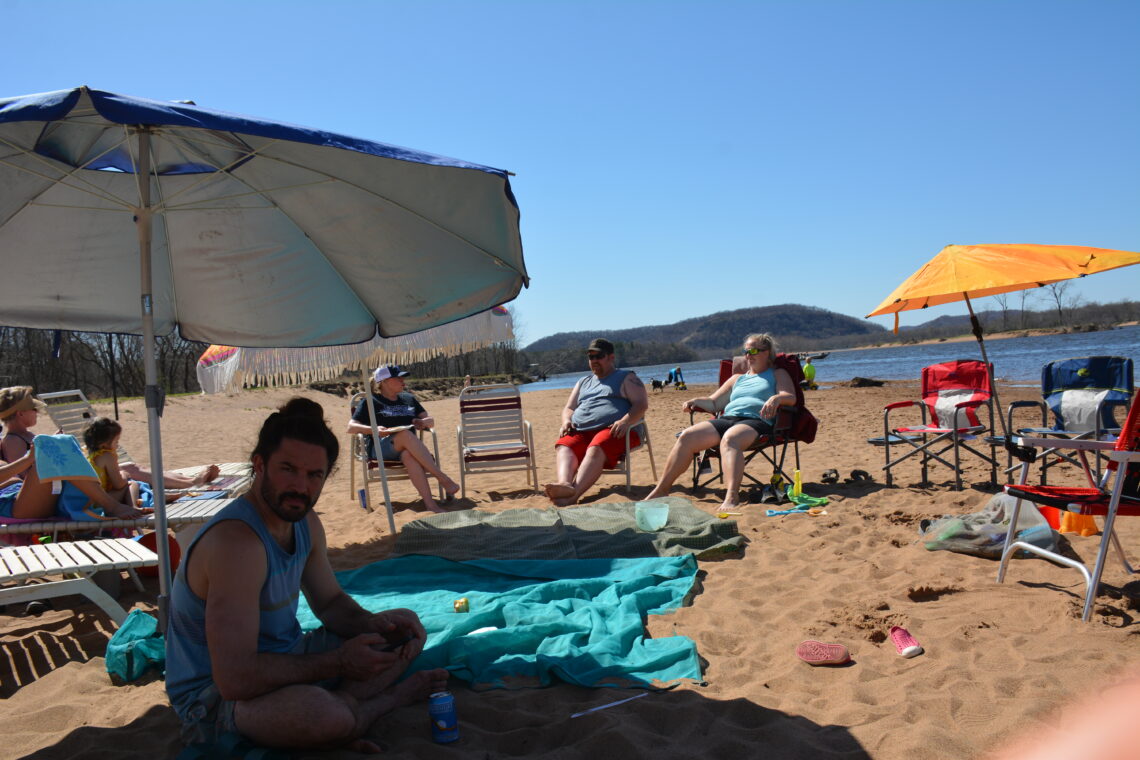 With younger members attentive to the keeper’s comfort and appetite as he and Phyllis occupied comfortable chairs, ate Andy and Ari’s delicious quesadillas etc., caught up on the latest family gossip, soaked up the sunshine while watching the bird and human activity along the river and appreciated the fact that a couple of rambunctious dogs and a covey of small kids cavorted in the sand and water until they were obviously unsalvageable as it relates to future human contact.